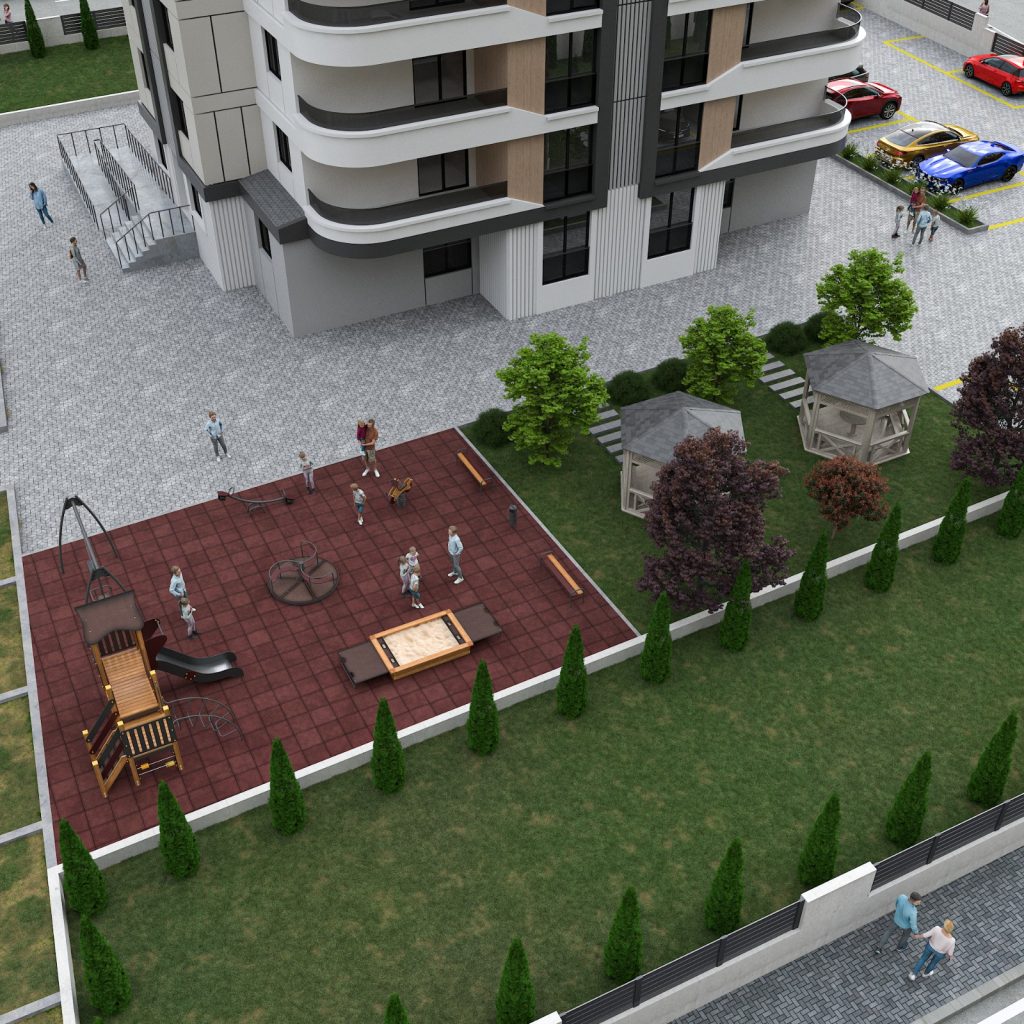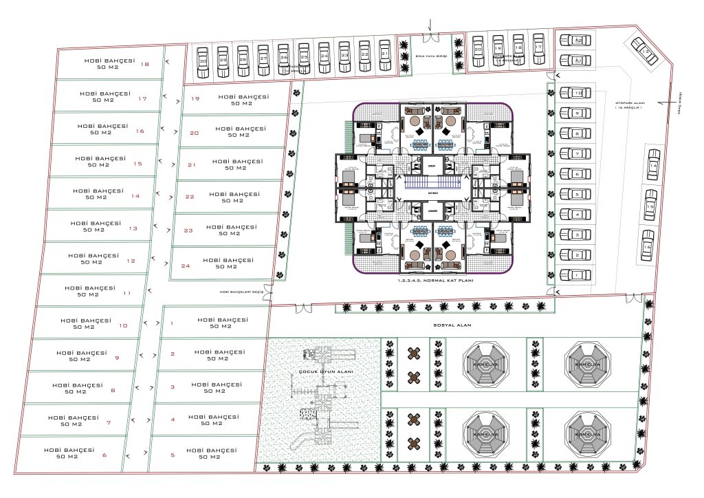 Her dairenin kendine ait 50m2 hobi bahçesi bulunmaktadır.